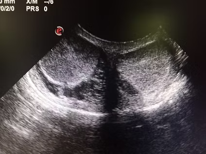Ultrazvok mod pri ne kastriranemu psu je pokazal povečan in otečen scrotum.